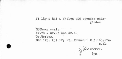 //// Vi låg i Räf i fjol en vid svenska skärgården //// Sjöberg saml# //// Ur.78 = Nr.23 och Nr.60 //// Öb.Wefvar, //// SLS 125, (5) 12; 27, funnen i R 3>l65,174- //// ^^ s.ll. //// (j ABO. ////