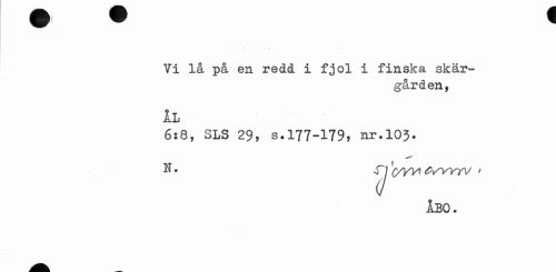 //// Vi lå på en redd i fjol i finska skärgården, //// 11 //// 6:8, SLS 29, s.177-179, nr.103. //// N. (/yyi <VW7V ' //// ÅBO. ////
