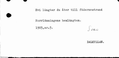 //// Hvi längtar du åter till fädernestrand Norrlänningens hemlängtan. //// 1905,nr.5. J ^ //// DALKULLAN. ////
