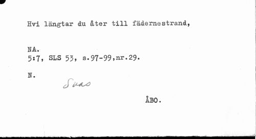 //// Hvi längtar du åter till fädernestrand, NA. //// 5:7, SLS 53, s.97-99,nr.29. //// I //// N. //// J //// i //// ÅBO. //// i //// / //// I //// | //// ^iMMMMIHMifttdÉÉIÉÉfeÉMlliaM ////