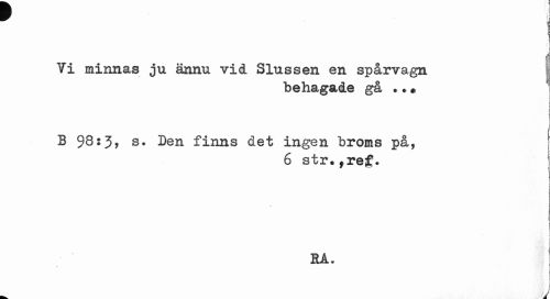 //// 1 //// 1 //// i //// Vi minnas ju ännu vid Slussen en spårvagn //// behagade gå ..# //// | //// B 98:3? s. Den finns det ingen broms på, | //// 6 str.fref. //// RÅ. //// j ////