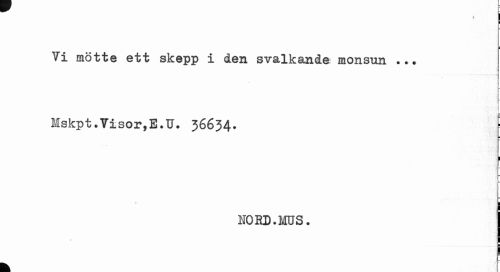 //// ! //// i //// Yi mötte ett skepp i den svalkande monsun . //// Mskpt. Visor, E.U. 36634. I //// 1 //// ! i //// HORD.MUS. //// k 1 ////