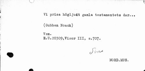 //// Hi • //// Vi //// prisa högljutt gamla testamentets dar.«• //// (Gubben Noack) V sm. //// E.U.20309,Visor III, s.707. //// NORD.HUS- ////
