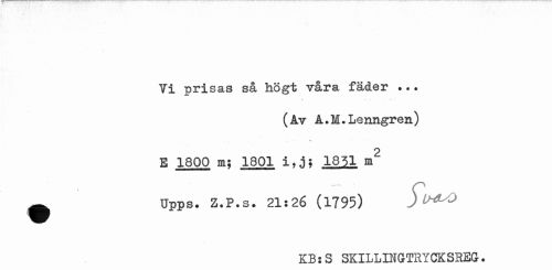 //// Yi prisas så högt våra fäder //// V- - ¦ ... ¦ //// (Av A.M.Lenngren) //// .• ii //// 2 //// E 1800 m; 1801 i,j; 1851 m ^ Upps. Z.P.s. 21:26 (1795) ) 0^0 //// KB:S SKILLINGTRYCKSREG. ////