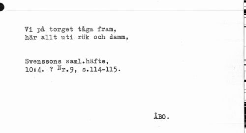 //// f j //// Vi på torget tåga fram, här allt uti rök och damm, //// Svenssons saml#häfte, //// 10:4. ? Hr.9, s. 114-115• |! //// ¦ //// åbo. j ////