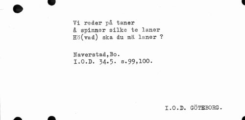 //// Yi reder på taner å spinner silke te laner Hö(vad) ska du mä laner ? //// Haverstad,Bo, //// I.O.D. 34*5- s.99>100. //// I.O.D. GÖTEBORG. //// a*. A ////