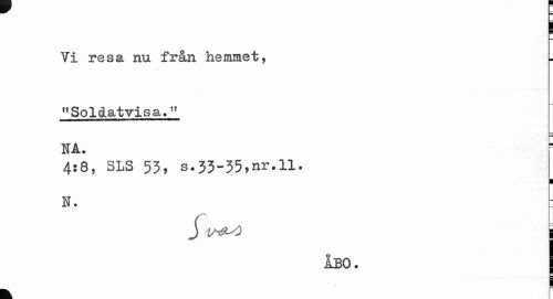 //// Vi resa nu från hemmet, "Soldatvisa." //// NÅ. //// 4:8, SLS 53, s.33-35,nr.11. //// 1 //// N. : //// ju^o i //// ÅBO. I //// k ////