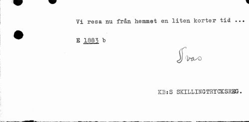 //// Ti resa nu från heiamet en liten korter tid ... //// E 1885 b //// jfhxso //// KBsS SKILLINGTRYCKSREG. ////