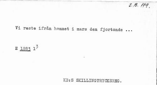 //// Yi reste ifrån hemmet i mars den fjortonde ... E 1883 l3 //// KB:S SKILLINGTRYCKSREG. i ////