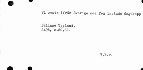 //// Yi reste ifrån Sverige med fem lastade ångskepp //// Bälinge Uppland, 2498, s.80,81. //// V.F.F. //// ^fc M ////