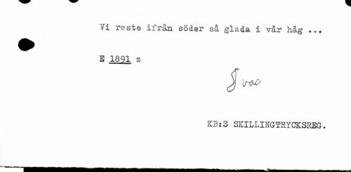 //// Vi reste ifrån söder så glada i vår håg ... //// E 1891 z //// Tlj^O //// KB:S SKILLINGTRYCKSREG. ... ,, „ , ^ - — - - -... ////