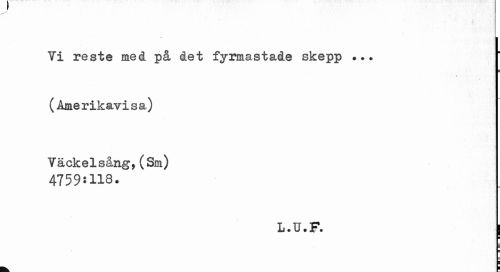 //// • . //// Vi reste med på det fyrmastade skepp ••• (Amerikavisa) //// Väckelsång,(Sm) 4759:118. //// L.U.F. //// ¦ ¦ ¦ //// k. ¦ ////