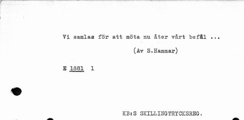 //// t //// Vi samlas for att möta nu åter vårt befål ... //// * ... ... //// (åt S.Hammar) //// e 1881 1 //// KBj S SKTT.L TMiTOYCFSREfi.. ////
