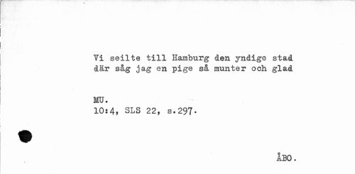 //// Yi seilte till Hamburg den yndige stad där såg jag en pige så munter och glad //// MU. //// 10:4, SLS 22, s.297- //// i //// ÅBO. ////