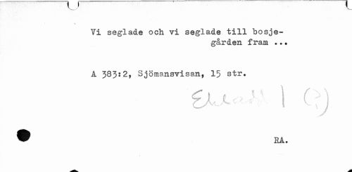 //// V__s //// Vi seglade och vi seglade till hosje- //// gården fram •?• //// A 383:2, Sjömansvisan, 15 str. //// C\ i 1 CA ////