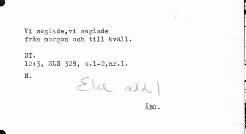 //// I //// t //// t _ //// m //// Vi seglade»vi seglade från morgon och till kväll. //// ST. //// 12:3, SLS 328, s.l-2,nr.l. ! //// åbo. j ////