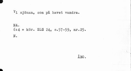 //// sjöman, som på havet vandra. //// ka. //// 6:4 + kör. SLS 24, s.57-59, nr.25. //// N. //// v. //// åbo. //// 1 //// I //// k ////