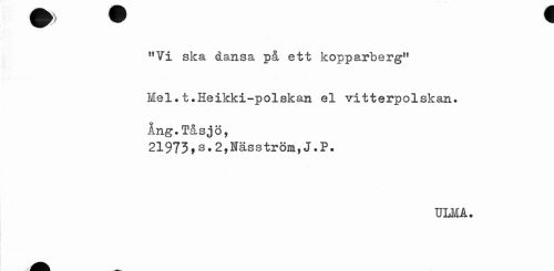 //// !fVi ska dansa på ett kopparberg" //// Mel.t.Heikki-polskan el vitterpolskan. Äng.Tåsjö, //// 21973,s.2,Näsström,J.P. //// ULMA. ////