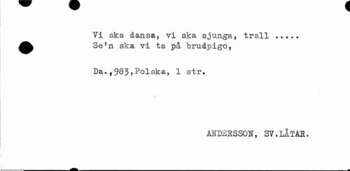 //// Ti ska dansa, vi ska sjunga, trall ^^ Se!n ska vi ta på brudpigo, //// Da.,983,Polska, 1 str. //// ANDERSSON, SV.LÅTAR. ////