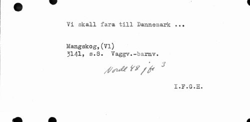 //// Vi skall fara till D ann em ark //// Mangskog,(Vi) //// 5141, s.8. Vaggv.-barnv. //// t* /j* 3 //// I.F.G.H. ////