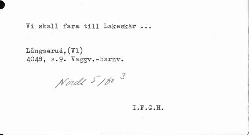 //// w //// Vi skall fara till Lakeskär //// Långserud,(Vi) //// 4048, s.9. Yaggv? -"barnv. //// 1 i //// •>/> 3 //// I • F • G # H • //// i //// ¦ //// 1 //// j ////