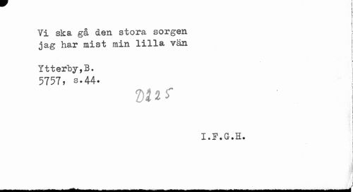 //// L //// f //// i i //// Vi ska gå den stora sorgen //// jag har mist min lilla vän j //// Ytterby,B. j //// 5757, s.44. //// ni* I //// i 1 i //// 1 1 //// I.P.G.H. //// 1 I //// I //// 1 i //// fl J //// I //// _i-_aé___._i ////