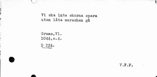 //// * //// Vi ska inte skorna spara utan låta marschen gå //// Grums,Vl. //// 1044?s.4* D 224. //// ^ V.F.F* ////