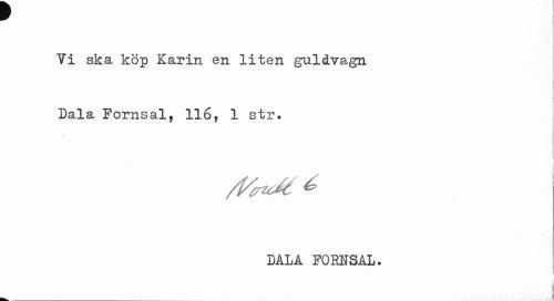 //// ¥ //// Vi ska köp Karin en liten guldvagn Dala Fornsal, 116, 1 str. //// t //// BALA FOKETSAL. //// I //// A ////