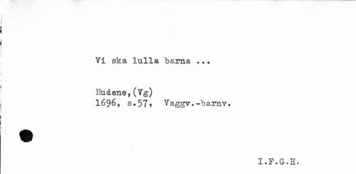 //// \ //// Yi ska lulla barna ... Hudene,(Yg) //// 1696, s.57* Vaggv.-barnv» //// I«F«Gr»He ////