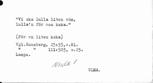 //// r //// nVi ska lulla liten vän, //// * Y //// lulla1 n för ena kaka." //// ? //// (För en liten kaka) //// i //// Vgl.Ransberg, 25:55»s.81. " " 111:503, s.25. //// Lampa • //// A/tod*- / //// ULMA. ////