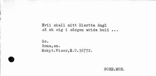 //// Evii skall mitt Hiertta ängl så oh sig i sårgen wrida huii ... //// Go. //// Rone,sn# //// Mskpt»Visor,E.U.36772* //// # //// NOBD.MUS. ////