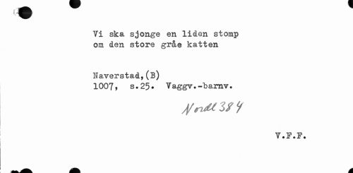 //// Vi ska sjonge en liden stomp om den store gråe katten //// Näverstad,(b) //// 1007, s.25» Vaggv.-barnv. //// tftndizy/ //// V.F.F. ////