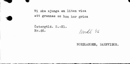 //// Vi ska sjunga en liten visa ^^^ att grannas so hon har grisa //// Östergtld. 3.-Hl. //// fy^Xl ti //// NOKDLAHDEH, BARNVISOR. ////