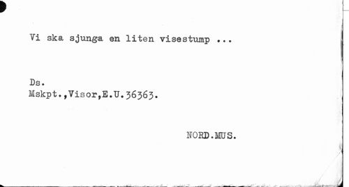 //// T — //// Ti ska sjunga en liten visestump Ds. //// Mskpt.,Tisor,E.U.36363. //// NOBD.MUS. //// ., ... .., jLA ////