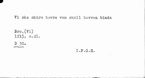 //// ! //// Vi ska skära havre vem skall havren binda //// Bro,(71) 1215, s.41. //// D 30. //// I*]?»Gr*H» //// ! //// ... . _. k. j ////