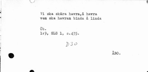 //// ... //// Ti ska skära havra,å havra vem ska havran binda å linda //// Öb. //// 1:9, sls 1, s.435. //// P30 //// ^ åbo. ////