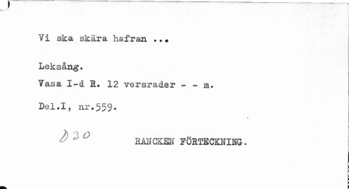 //// Vi ska //// sicMj^st hal 2? sin * * # Leksång. //// Vasa I-d R. 12 versrader - - m. //// ..." r //// Del.I, nr.559. //// ¦ //// RåNCKEN FÖRTECKNING. ////