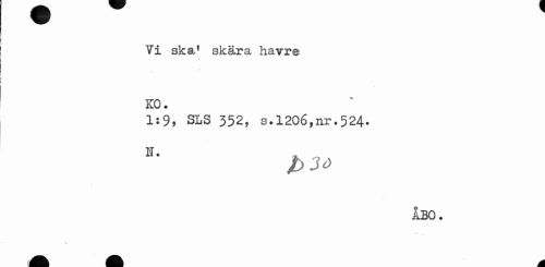 //// Yi ska1 skära havre KO. //// 1:9, SLS 352, s.1206,nr.524- //// N. //// £>3<> //// ÅBO. //// t ////