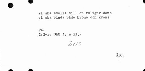//// Vi ska ställa till en roliger dans vi ska binda både krona och krans //// PA. //// 2s2+r. SLS 4, s.115» //// J>//3 //// åbo. ////