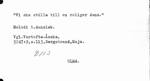 //// I //// f1Vi ska ställa till en roliger dans»11 //// Melodi t.danslek. //// Vgl.Vartofta-Asaka, 3 2 47191s.113,Bergs trand, Maj a. //// 2//J //// ULMA. //// a ////