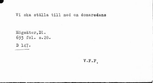 //// Vi ska ställa till med en domaredans //// Högsäter,Dl. 693 fol. s.28. //// D 147. //// V.F.F //// » //// ___._—___.___. ////
