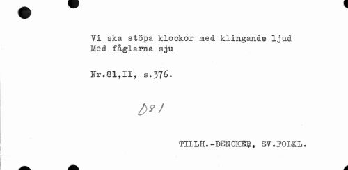 //// Vi ska stöpa klockor med klingande ljud Med fåglarna sju //// Ur.81,II, s.376. //// 1 //// TILLH.-DENCKE?, SV.FOLKL. //// a. A ////