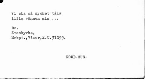 //// Ti ska så mycket tåla lilla vännen min .•. //// Bo. //// Stenkyrka, //// Mskpt.,Visor,E.U» 31099* //// i //// NORD.MUS. //// "___ - ... t?... _ ___... ___ _-___ ////