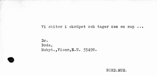 //// Vi skiter i skräpet och tager oss en sup ... //// Dr. Boda, //// Mskpt.,Visor,E.U. 35498. //// NORD.MUS. ////