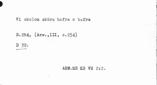 //// ' i //// l //// Yi skolom skära hafra o hafra //// S.284, (Arw.,111, s.254) //// X //// D JO. //// J //// ARW.MS KB YS 2:2. //// V ////