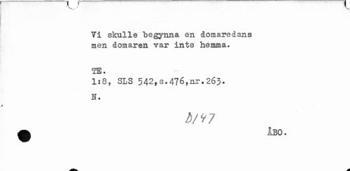 //// il //// Yi skulle begynna en domaredans men domaren var inte hemma. //// TE. - //// 1:8, SLS 542,s.476,nr.263. //// N. //// b/17 ^ ////