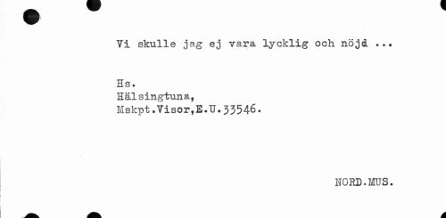 //// Vi skulle jag ej vara lycklig och nöjd ... //// Hs. //// Hälsingtuna, //// Mskpt.Visor,E.U.33546. //// NORD. MUS. //// A. A ////