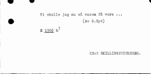 //// Vi skulle jag nu så ensam få vara ... åk (Av G.Syd) //// E 1906 h9 //// KB: S SKILLINGTRYCKSREG. ////