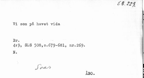 //// (• v. //// Vi som på havet vida //// Br. ...| //// 4:9, SLS 508,s.679-681, nr.269. //// K. //// 1 //// ÅBO. i ////