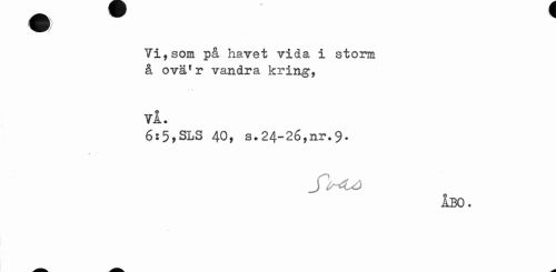 //// Vi,som på havet vida i storm å oväfr vandra kring, //// t //// vi. //// 6:5,SLS 40, s.24-26,nr.9. //// Jl^U) //// ÅBO. ////